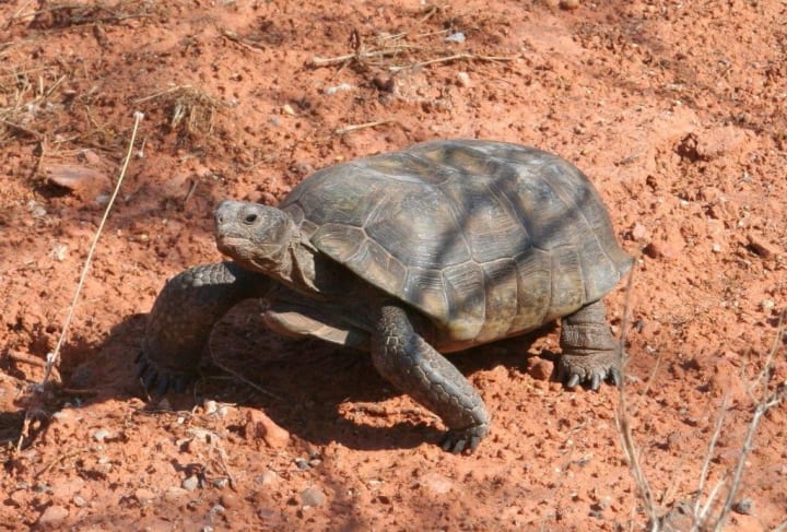 Desert Tortoise native to the arid Mohave Desert in southwestern Utah. Diminishing in number due to human activity and disease.