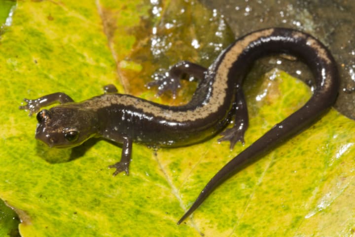 Virginia is home to different species of salamanders. They make up the bulk of wild amphibian life. Among them is the Shenandoah Salamander an endangered species and only found on three mountains in northwestern Virginia.