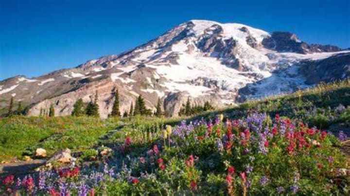 Mount Rainier National Park is located near the city of Tacoma and is the first ever-established national park in the US.