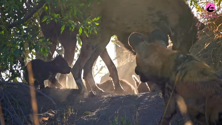 These wild dog puppies look too small for this world, but it’s their first time outside as they emerge from the den.