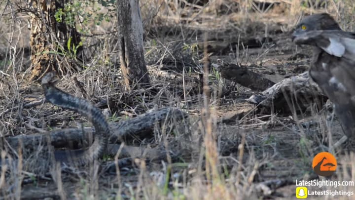 A cobra put up a stout defence after being ambushed by a snake eagle. With its hood raised, the snake managed to keep the raptor guessing, leading to a surprising outcome.