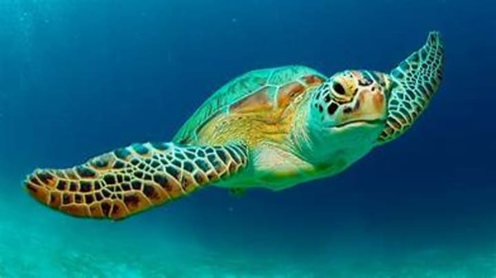 Green sea turtles have dark grayish-green bodies and shells with a yellowish-white lower shell. They are among the largest of other shelled turtles. Juveniles feed on jellyfish and invertebrates, but adults are herbivores and feed on sea lettuce and algae. They normally prefer warm currents and are spread across the Mediterranean Sea, specifically in the coastal waters of Cyprus, Syria, and Turkey.