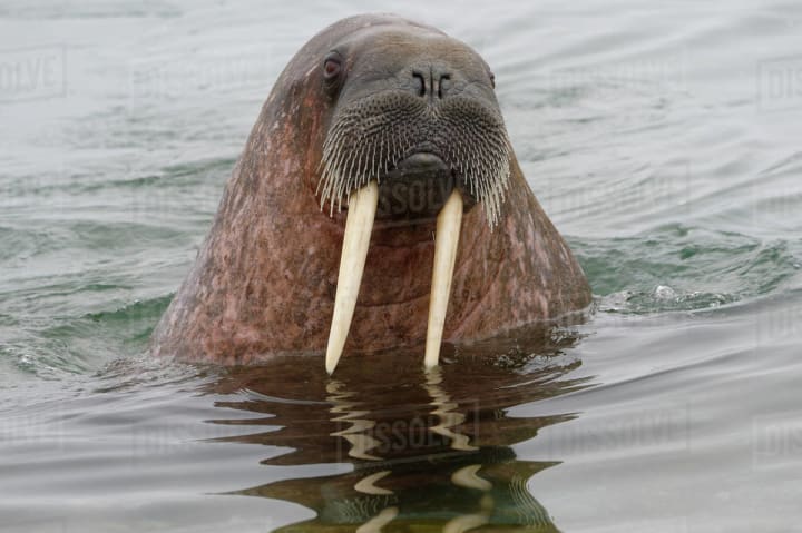 The largest animal in the country is the walrus with its big tusks.