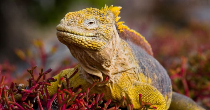 Galapagos Land Iguanas are a very large species of lizard. They're endemic to the Galapagos Islands. These lizards are active during the day and sleep in burrows at night. They're herbivorous and dine on insects, centipedes, and carrion. They get their moisture from prickly-pear cactuses.