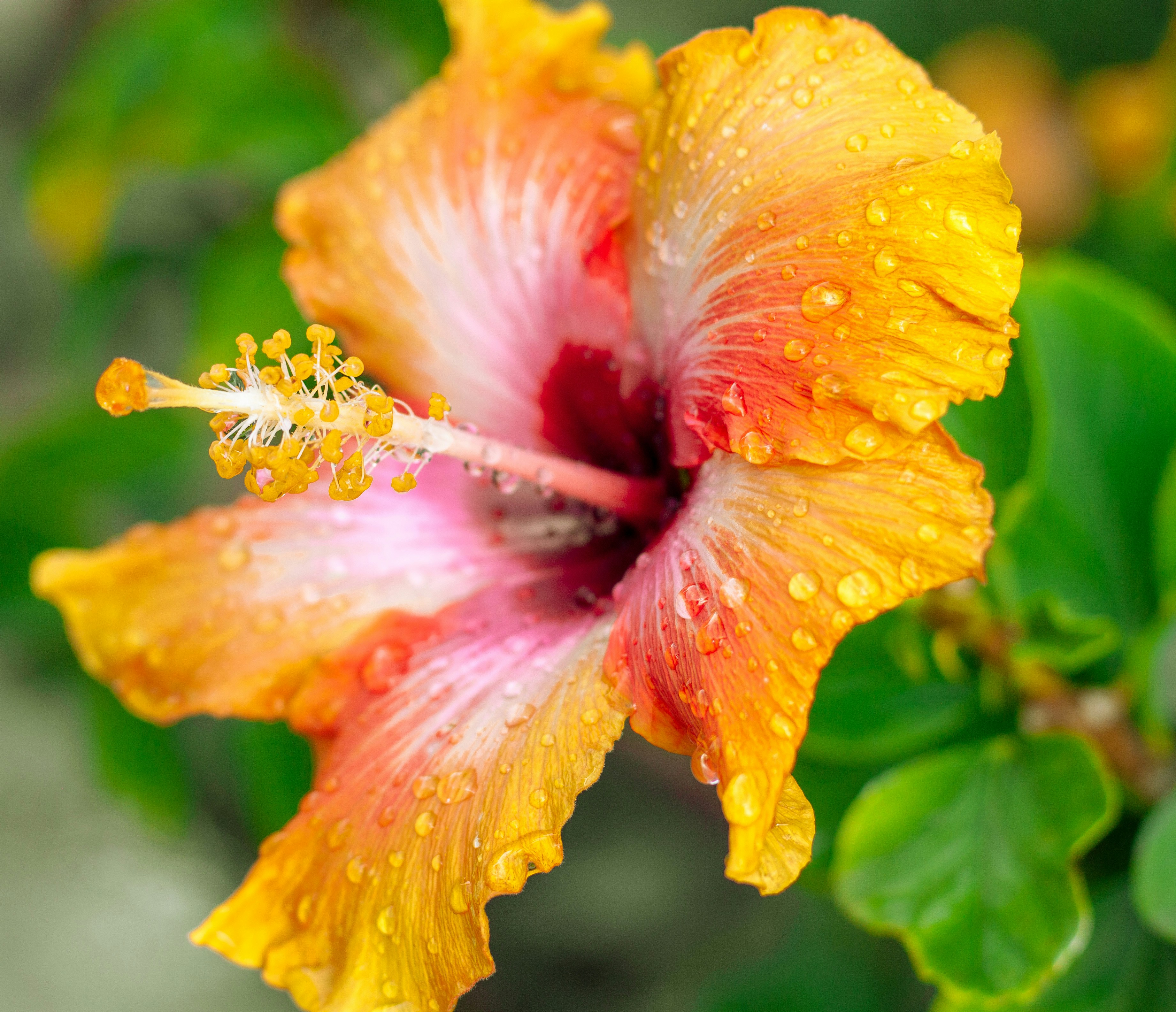This hibiscus is a visual celebration. Its petals explode in a tie-dye mix of orange, red, yellow, and pink, creating a different pattern with every bloom. No two flowers are exactly alike, and that’s exactly what makes it magical. Like a living piece of art, it reminds us that beauty isn’t about uniformity—it’s about bold expression.