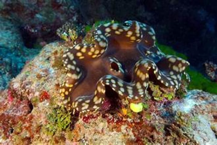 Giant clams are the largest bivalve mollusks in the world. They can be found in the warm, shallow waters of coral reefs in the Indo-Pacific region. These clams are filter feeders as the draw in water to extract plankton.They also have a symbiotic relationship with algae living in their tissues, which provide additional nutrients through photosynthesis.