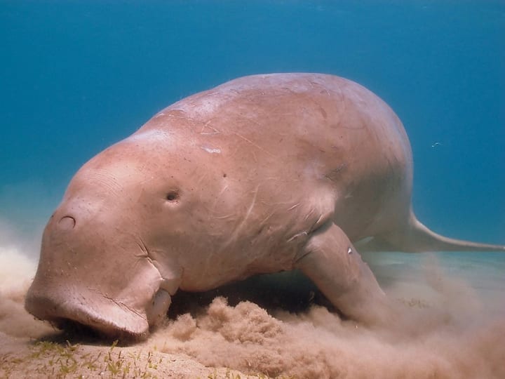 You are wondering what a dugong is. It is one of four species in a group of marine mammals. They are herbivores and their diet includes only plants, They are a tropical to sub-tropical species found in 37 different countries. The biggest population of dugong is in Australia with about 85,000. Their closest relative is the manatee.