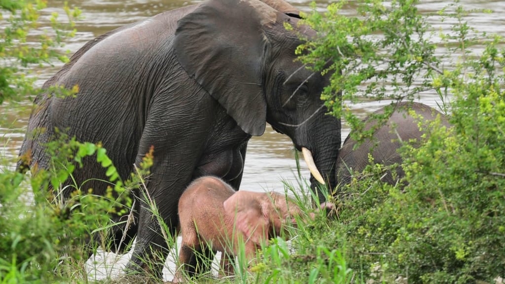 As tourists watch a herd of elephants bathe in the river, an unusual pink shape is visible in their midst. When it emerges, it is revealed to be a very rare creature indeed. This feature is about a living tale of something most exciting and astonishing. A tale of an outcast but not quite....