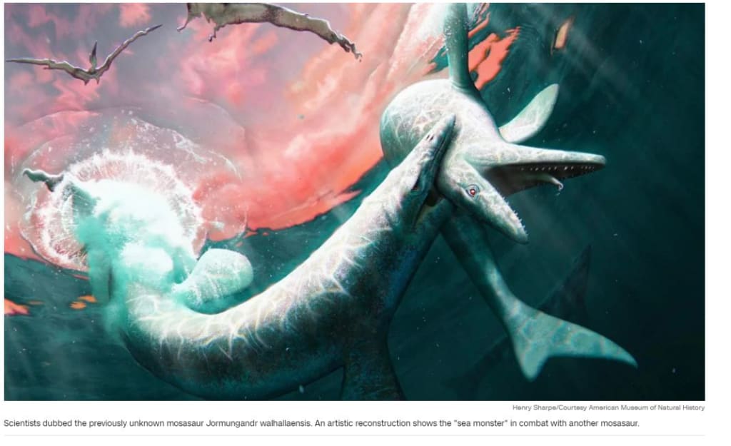 Scientists as of late portrayed the beforehand obscure mosasaur from fossils tracked down close to the North Dakota town of Walhalla. The town's name comes from Valhalla, the devouring lobby of Norse folklore where dead legends accumulate, so the researchers named the mosasaur Jormungandr walhallaensis. Its name references Norse fantasies of Jǫrmungandr, the Midgard Snake, as well as the site of the fossil's revelation, the specialists detailed Monday in the diary Notice of the American Exhibition Hall of Normal History.