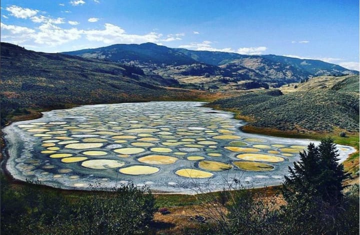 In British Columbia you can find the Spotted Lake. The surface of the lake has a distinctive polka-dot pattern. This pattern is a result of a unique mineral concentration. The lake has a large salt content and gets no water flow from any rivers or streams. The lake located northwest of Osoyoos in the Okanagan Valley and looks just like any other body of water. It was considered a sacred place by the Okanagan Nations and since 2001 the land belongs to them.