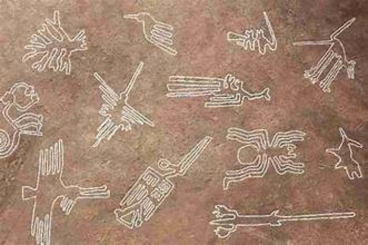 In Peru you'll find Nazca Lines in which the lines are around 2,000 years old. They were constructed by the native Nazca people. The shapes have geometric patterns as well as detailed images of local wildlife, all dug into the ground. They are located on the Pampa Colorada or Red Plain northwest of the city of Nazca in southern Peru. It is unknown why the Nazca people built these odd geoglyphs but one thought is that they used this spot to pray to the gods for rain. The site has been added to the UNESCO World Heritage List.