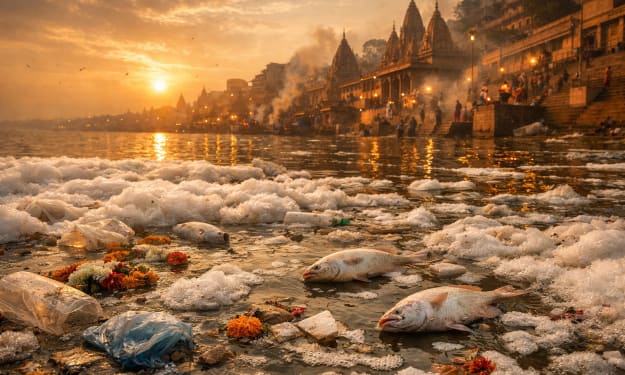 I stood on the banks of the Ganges once, years ago, and the air itself felt alive with something ancient. Pilgrims chanted, lamps floated on the water, and for a moment you could almost believe the stories that this river was born from the heavens and could wash away any sin. But even then, beneath the beauty, I noticed the strange sheen on the surface, the smell that didn’t quite belong to nature. Today, that memory hurts. Because the river I saw is still there… only now it’s dying in plain sight, and we’re all pretending it isn’t.