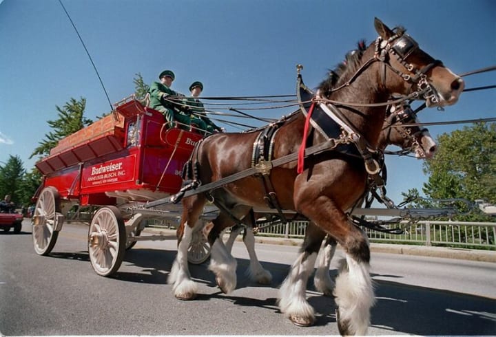 Clydesdales know how to sell beer and are the stars of the Budweiser commercials. They are known for their thick, flowing feathers, white blaze, and docile temperament. This breed originated in the Clyde River Valley in Lanarkshire, Scotland. During the 19th and 20th centuries, they were exported in large numbers to Australia, New Zealand, and the United States where they became popular farm animals. These are large draft horses and are used for agriculture and forestry. Clydesdales are easy to train. Along with Shire horses, Clydesdales have also been selected for the honor of parading on royal ceremonies as drum horses.