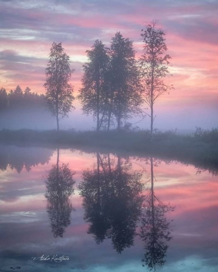 There is the gentle, rosy radiance of an early spring morning, when the first rays of the rising sun are softened by delicate shrouds of fog which creep through the newborn green grass. The light has an ephemeral beauty but only a faint touch; it is not yet strong enough to drive winter from the air. Everything about a misty spring dawn is fragile, gentle, new -- even the light.