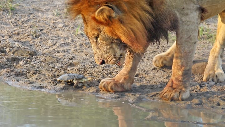 The lion continued to focus. All the while, the terrapin crept closer.