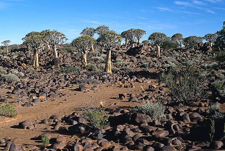 Keetmanshoop is one of the most beautiful sites in Namibia. It has quiver tree forests and dolerite rock formations that have eroded into unusual shapes.