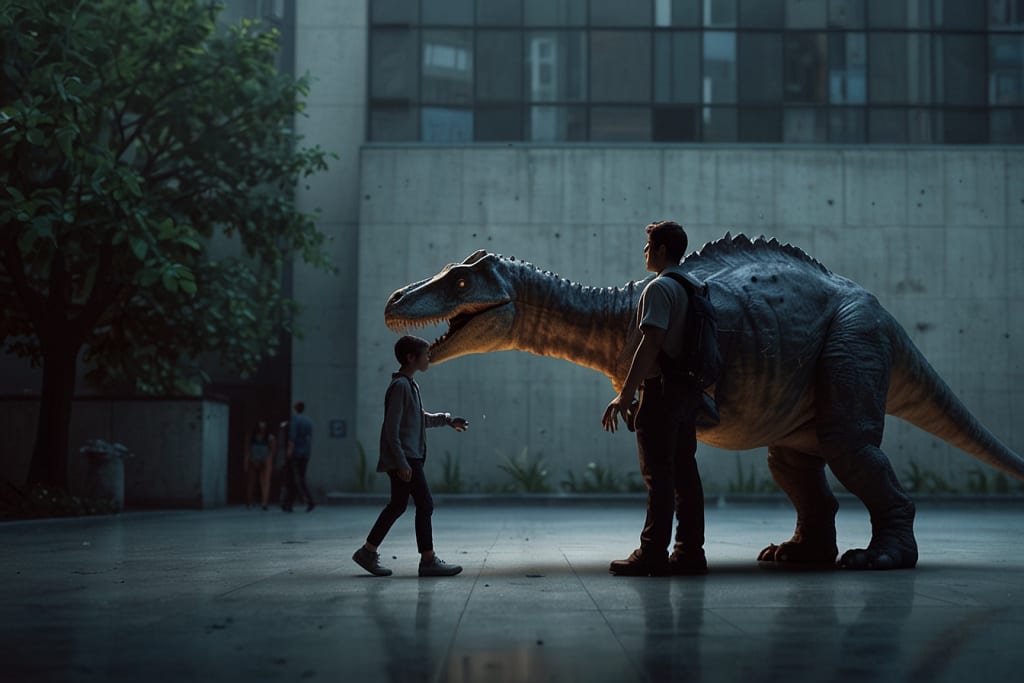 "A Journey into an Alternate Reality of Human-Dinosaur Coexistence"