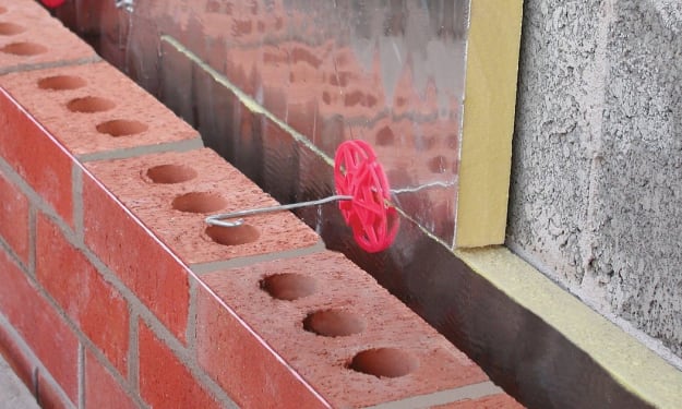 Cavity wall insulation is injected through small, drilled holes in the wall.