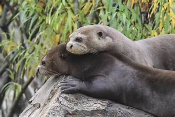 Native to South America, giant otters are known for being social and forming strong monogamous bonds. They can be seen playing and swimming together in rivers. When it comes to raising baby otters, both parents get involved in nurturing and protecting their young. Their bonds are based in love and teamwork.