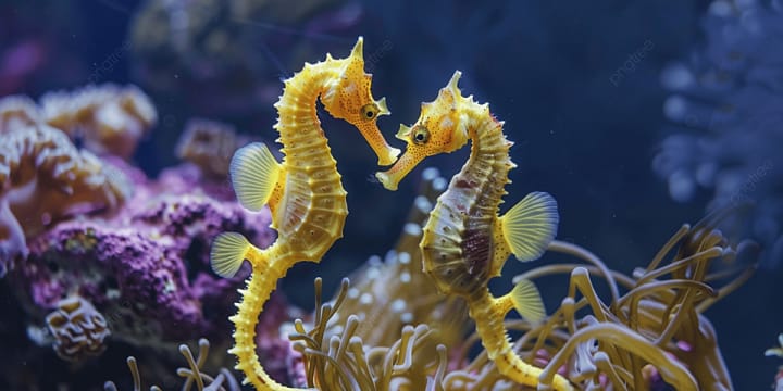 Seahorses have enduring monogamous relationships. They engage in a daily dance, wrapping around each other to reinforce their bond. Male seahorses carry the young, and their commitment to each other and raising their young is a lovely example of equality and understanding.