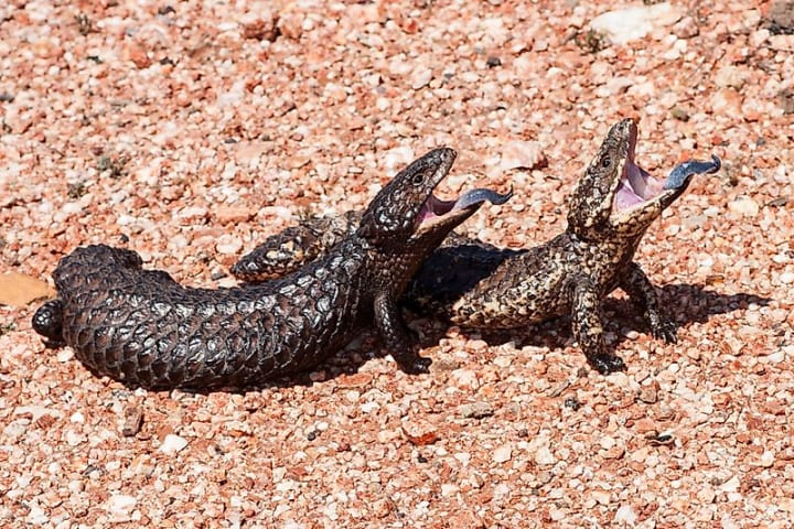 Native to Australia, shingleback skinks show romance in the reptilian world. These lizards form lifelong bonds and can be seen basking in the sun together. During mating season they can be seen nudging each other and following along closely. They show true devotion.