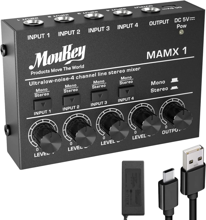 The audio mixer is an essential device in the world of music production and performance. The Moukey mixer audio, in particular, offers a range of features that make it a desirable option for musicians and sound engineers. With the ability to switch between stereo and mono modes, it allows for greater flexibility in terms of input and output connections. The mixer is powered by a DC 5V power supply, making it more versatile in terms of its application scenarios. The multi-function and simple control of the audio mixer means that it can collect sound from different sources, each with an independent volume control. Additionally, it is designed to produce low noise and high-quality sound output, even at the highest levels. The Moukey mixer audio is ideal for those looking to quickly mix multiple channels into one track for a range of setups, including keyboards, small stage setups, drum sets, or sub-mixes. Lastly, the after-sale service guarantee ensures a worry-free shopping experience, with 24-hour customer service available for any questions or concerns.