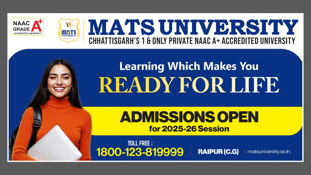 Established in 2006 and recognized by the UGC, MATS University is synonymous with academic brilliance and infrastructural innovation. With a vision to shape global citizens, it consistently ranks as the Best Private University in Raipur Chhattisgarh - thanks to its focus on modern teaching methods, student-centric amenities, and unmatched infrastructure.