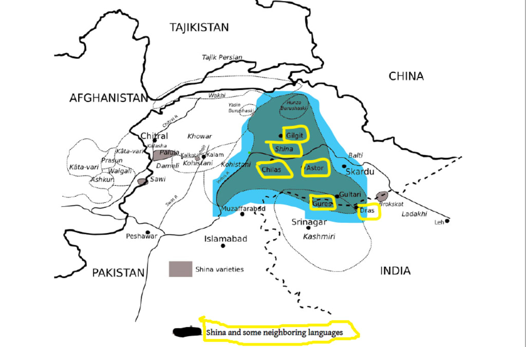 So, Bailey believes that 'Gilgit' is the true heartland of the Shina language and that Shina-speaking places include 'Gurez', 'Tiliel’, 'Burzil Valley’, 'valleys of upper Kishenganga’, 'the districts of Astor,' ‘Chilas’, ‘Kohistan’, and 'Gilgit’, among others. Thus, “Astori, Gurezi, and Drasi make up the Astori group” (Radloff. 1992: 122).