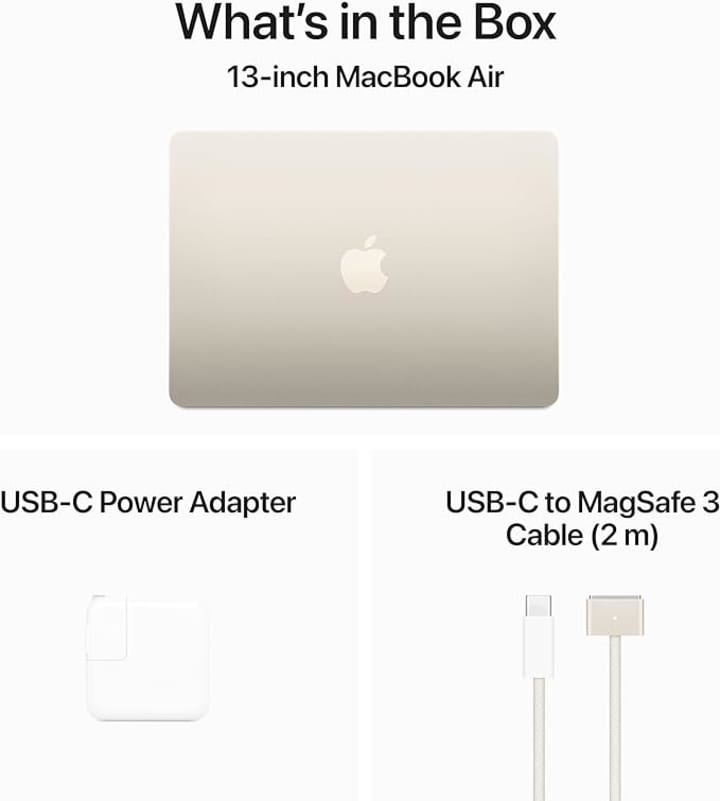 Apple 2024 MacBook Air 13-inch Laptop with M3 chip: 13.6-inch Liquid Retina Display, 8GB Unified Memory, 256GB SSD Storage, Backlit Keyboard, 1080p FaceTime HD Camera, Touch ID; Starlight