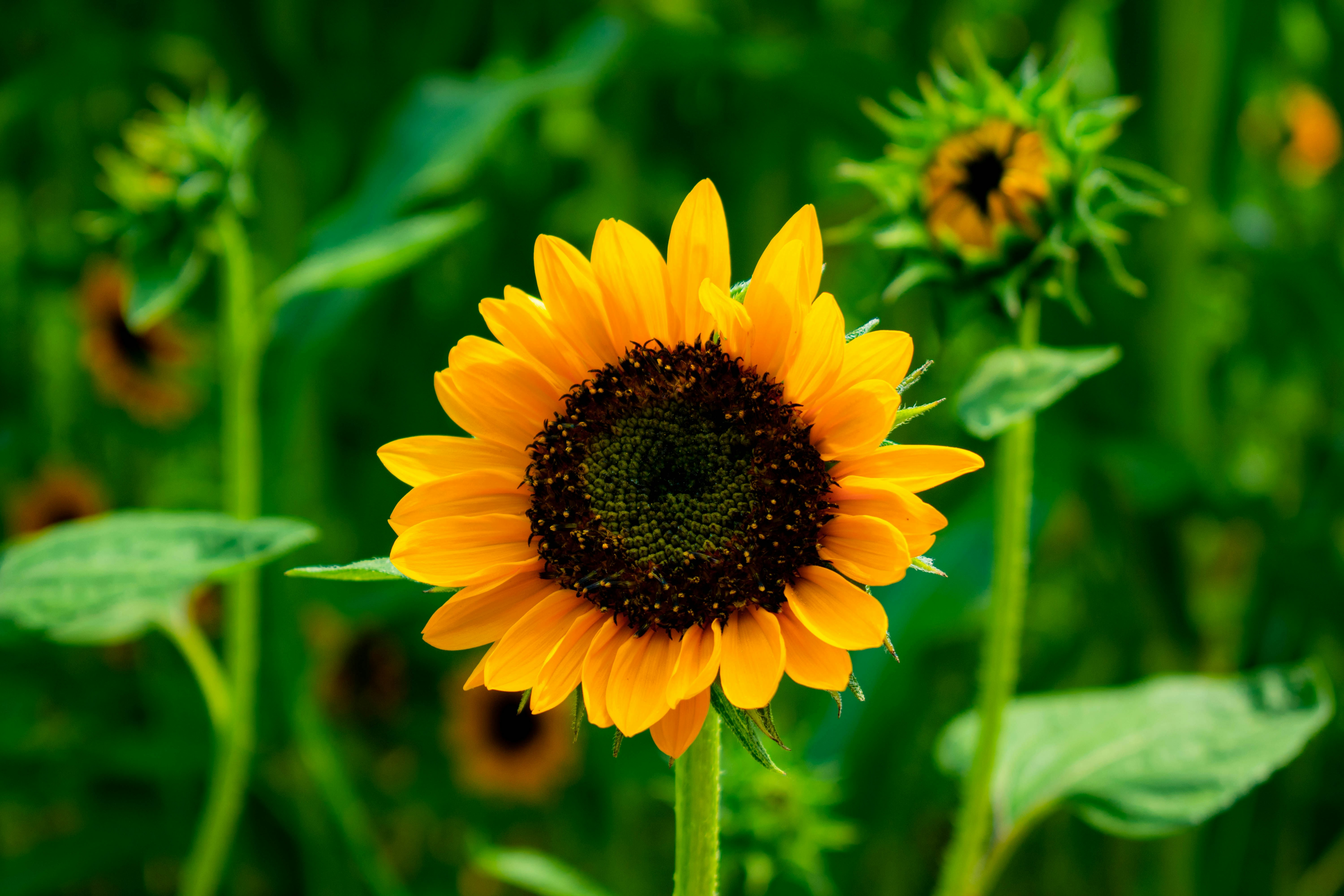 Sunflower - Sunflowers prefer full sun and well-draining soil. Plant the seeds directly in the ground after the last frost, and water regularly.