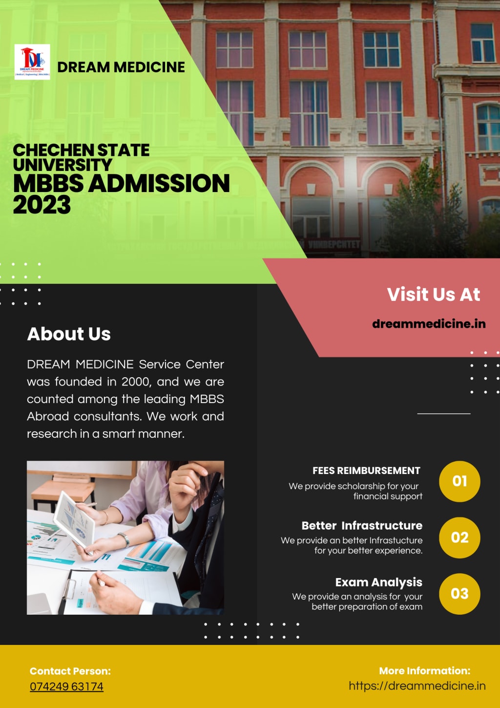 DREAM MEDICINE helps you enroll in the best medical institutes all over the world, which provides you with a great medical education in MBBS at a low cost and fulfil your dream to study in abroad.