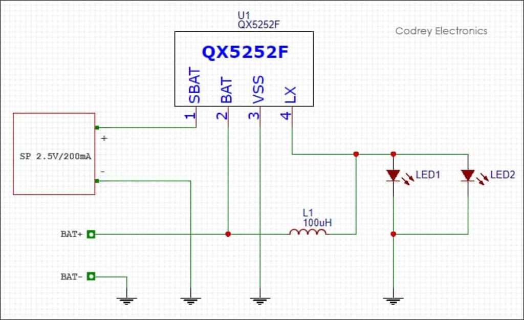2-Controller: Manages the battery charging process and drives the load (LED).
