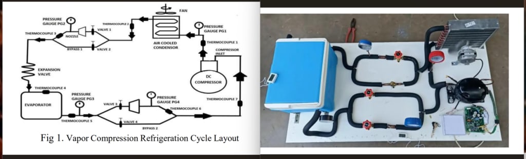 system, as according to literature a setup was fabricated by placing a nozzle in between condenser outlet and expansion valve and