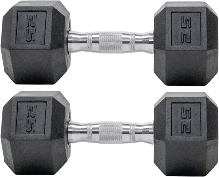 Available weight ranges: Hex dumbbells are available in a variety of weight ranges, including 5 lb, 10 lb, 20 lb, and 25 lb sets sold as a pair, allowing you to select the weight range that best suits your needs.