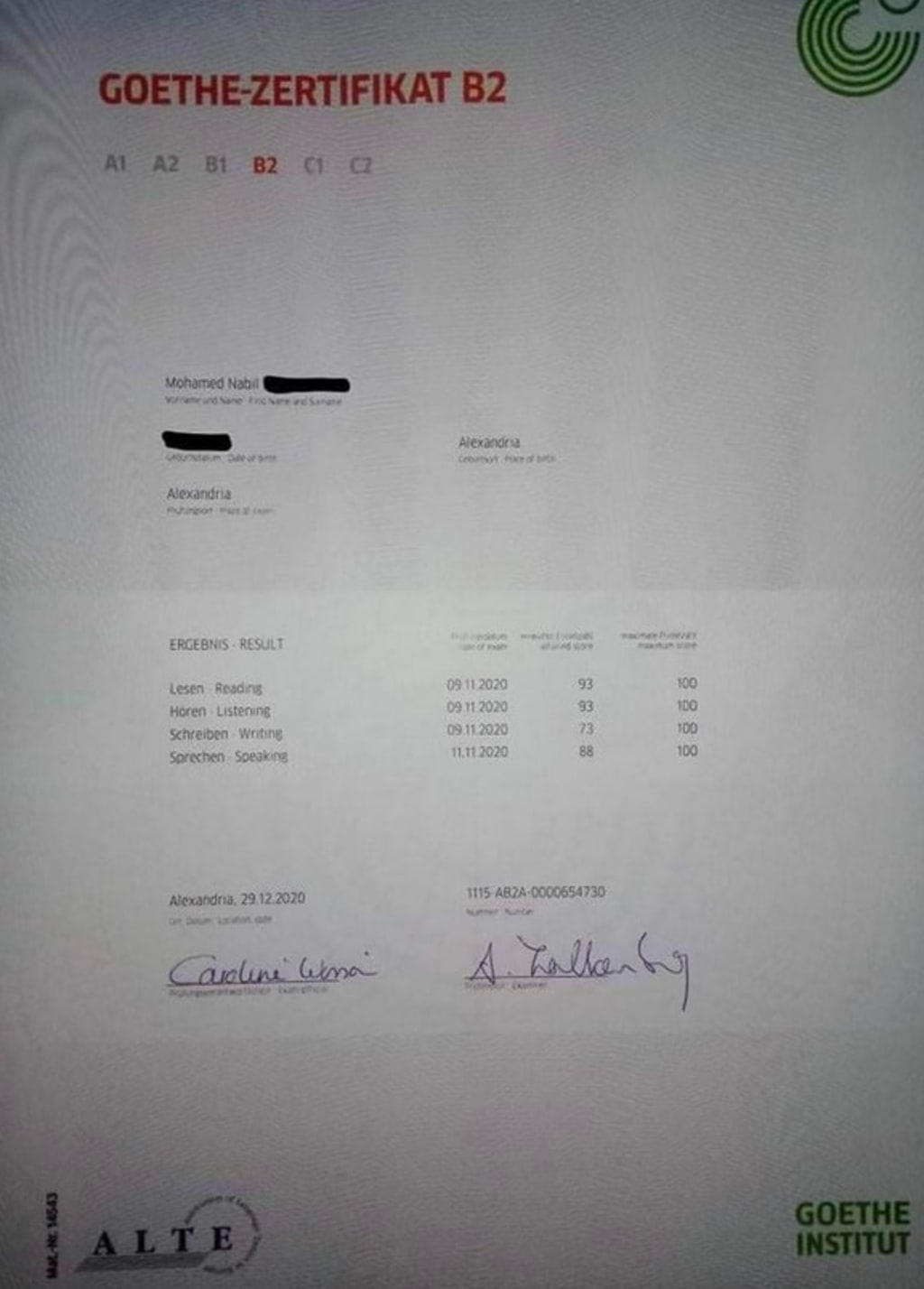 GOETHE CERTIFIED CERTIFICATE