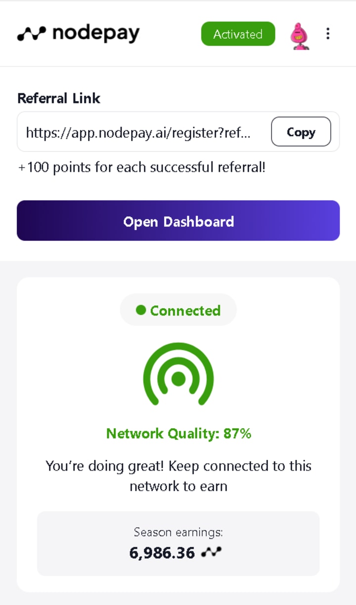 NodePay's referral program is a simple yet powerful way to generate income. By inviting others to join the platform, you earn a percentage of their staking rewards or transaction fees.
