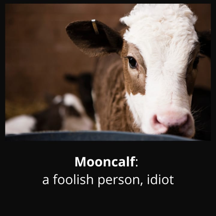 We were eating spaghetti the night it first happened. I was around 10 years old and was regaling my parents with the exploits of my playground nemesis. It the brief pause I took to catch my breath (10 year old girls talk a lot and very fast), my dad commented on what a moon calf she was. My fork dropped to my plate as I was taken aback by this unheard vocabulary. Naturally I inquired into its meaning but my dad, never shying away from a teaching opportunity, refused to tell. It being the 90’s, I instead dug into our trusty dictionaries in a mad search for knowledge. There I found my redemption.