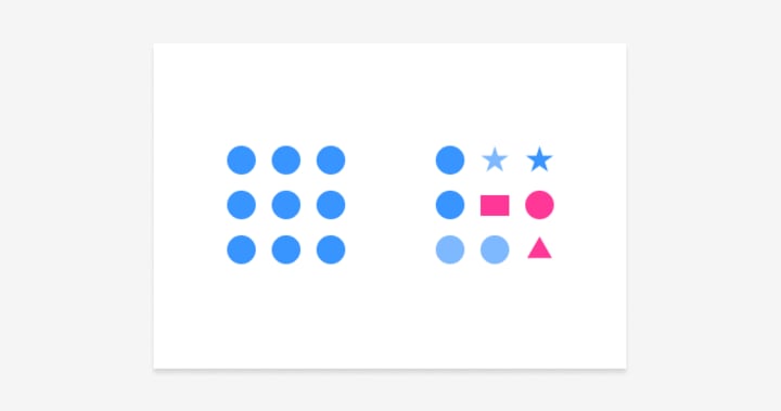 The Law of Similarity states that elements that are visually similar are perceived as related. This means that you can use visual cues to help users understand the relationships between different elements on your interface.