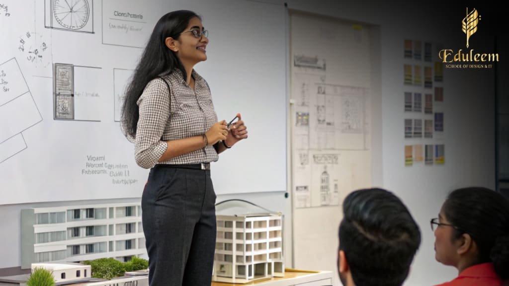 At first, Aarushi, like many students enrolled in interior design courses, found it daunting to stand up and explain her design choices. But in today’s interior design world, pitching ideas, justifying space utilization, and articulating the mood board are essential skills. Clients don’t just see what you design—they understand it through how you present it.