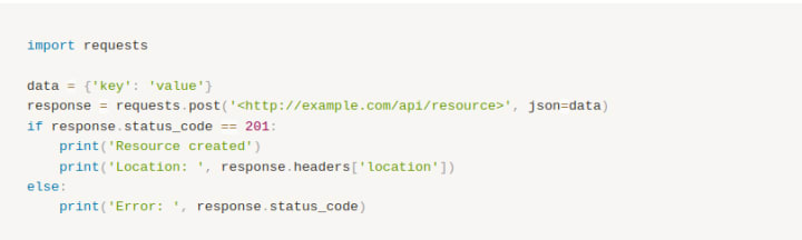 Here is a simple Python example of using the requests library to make a POST request: