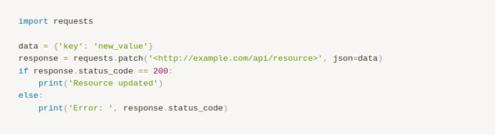 Here's a simple Python example of using the requests library to make a PATCH request: