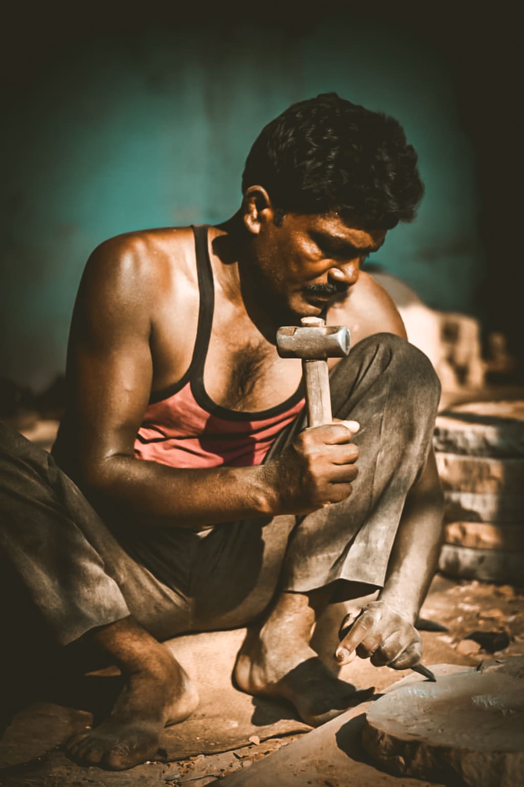 But while he stood there in all of his stony glory, he heard the sound of a hammer and chisel pounding into solid rock. He looked down and saw a stonecutter cutting chunks of rock from his feet.