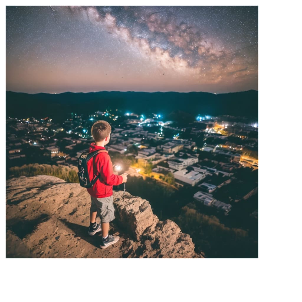 In a small town nestled between rolling hills, lived a young boy named Ethan. From a tender age, Ethan's fascination with space knew no bounds. Every night, he would lie on his back, gazing at the vast expanse of twinkling stars, dreaming of becoming an astronaut and exploring the mysteries of the universe.