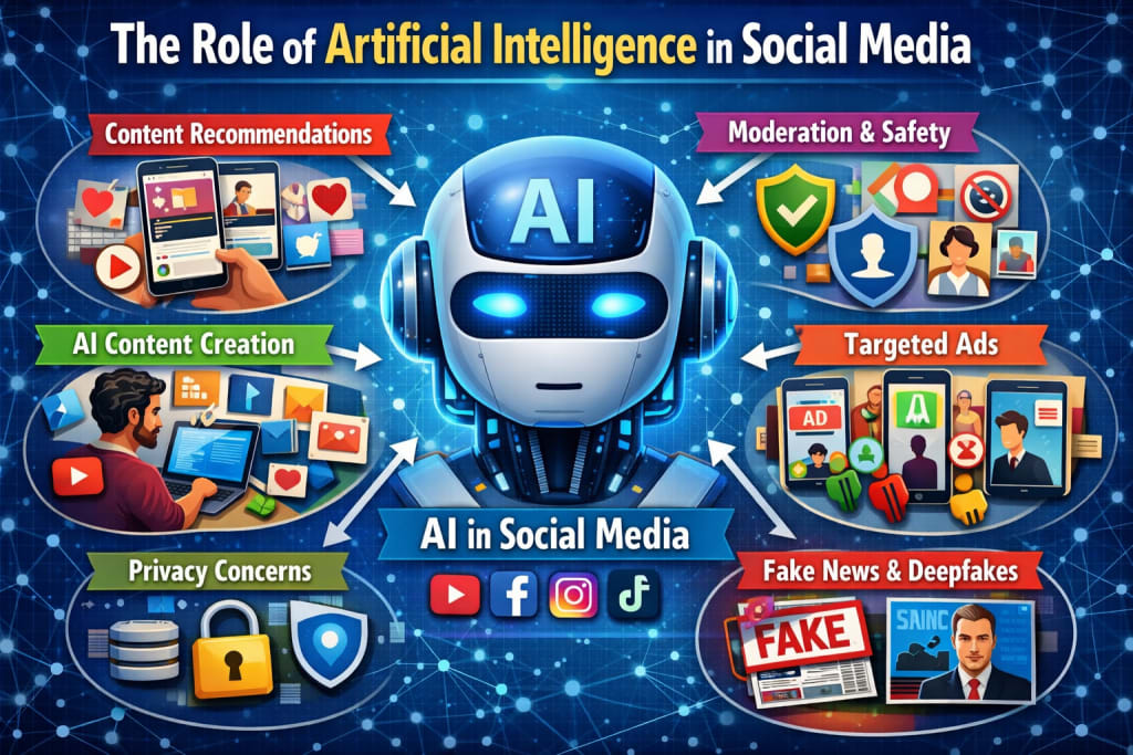 Artificial Intelligence, also known as AI, is playing a very important role in social media today. Almost every social media platform uses AI in some way. From showing posts on your feed to suggesting friends and videos, AI works quietly in the background. In 2026, the role of artificial intelligence in social media has become even bigger and more powerful. To understand this role, we first need to understand what AI technology really is.