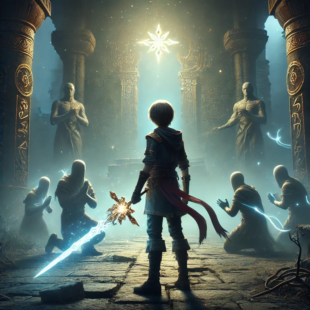 Kaelen and Lyria journeyed to the Ruins of Azarion, where the legendary Starblade was said to rest. But the ruins were cursed—haunted by the Echo Wraiths, fallen warriors doomed to test the one seeking the blade.
