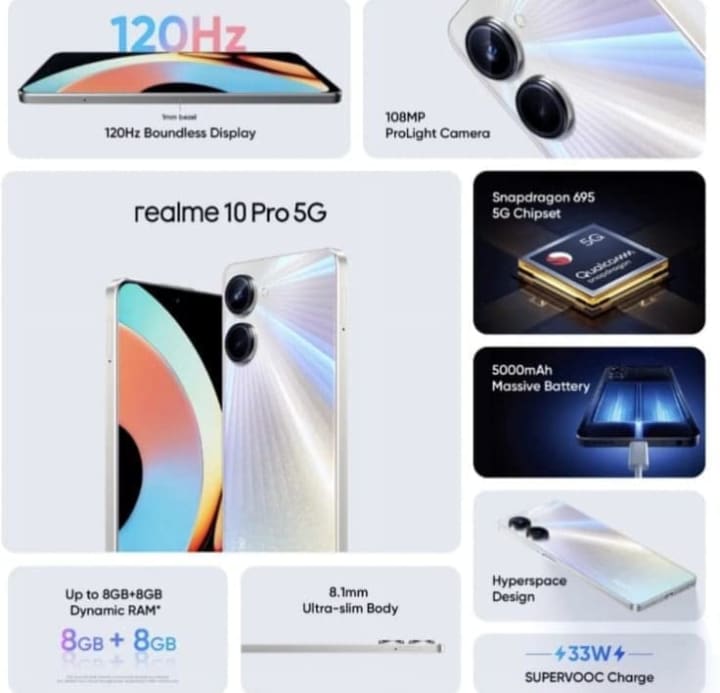 Realme 10 Pro: The Realme 10 Pro is a great smartphone that offers excellent value for money. It comes with a large 6.4-inch Super AMOLED display that is perfect for watching videos and playing games. The phone's camera setup is also impressive, with a 64MP primary sensor that captures stunning photos and videos. Additionally, the phone has a premium-looking design with a glass back and metal frame.