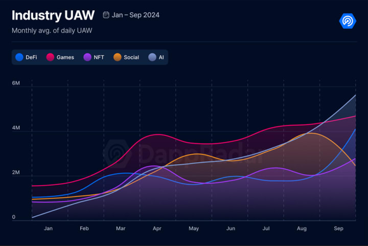 “In Q3 2024, the dApps surged by 70% (QoQ) with daily Unique Active Wallets reaching 17.2 million.” Source: dappradar