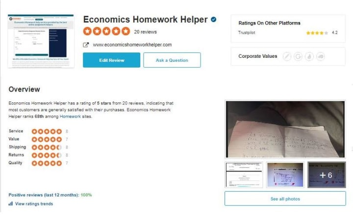 We value the economics homework help reviews that we receive from our clients