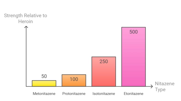 To put their strength in perspective, here's how different nitazenes compare to heroin [4]:
