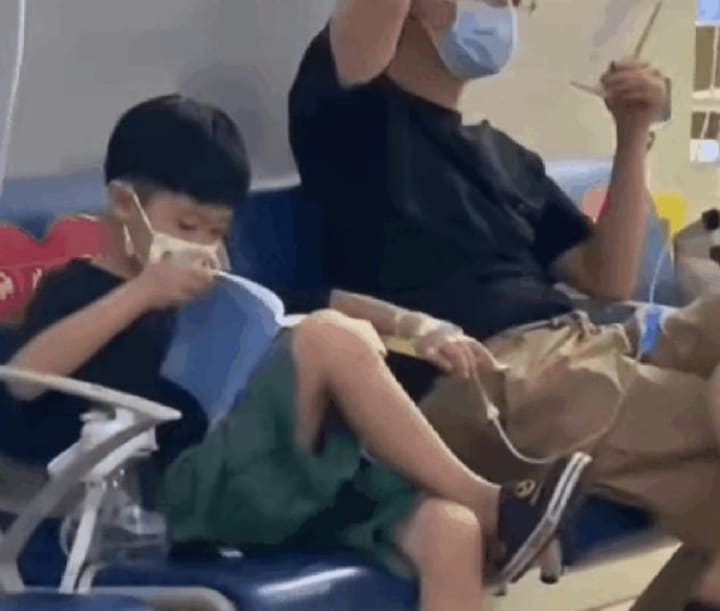 Also in the hospital, a father was praised by the whole network. The father, who accompanied his son to take a drip, was not impatient and did not play with his mobile phone. Instead, he took out his book and read it. For two hours, Dad didn't touch his cell phone. Influenced by his father, the son beside him is also reading carefully.